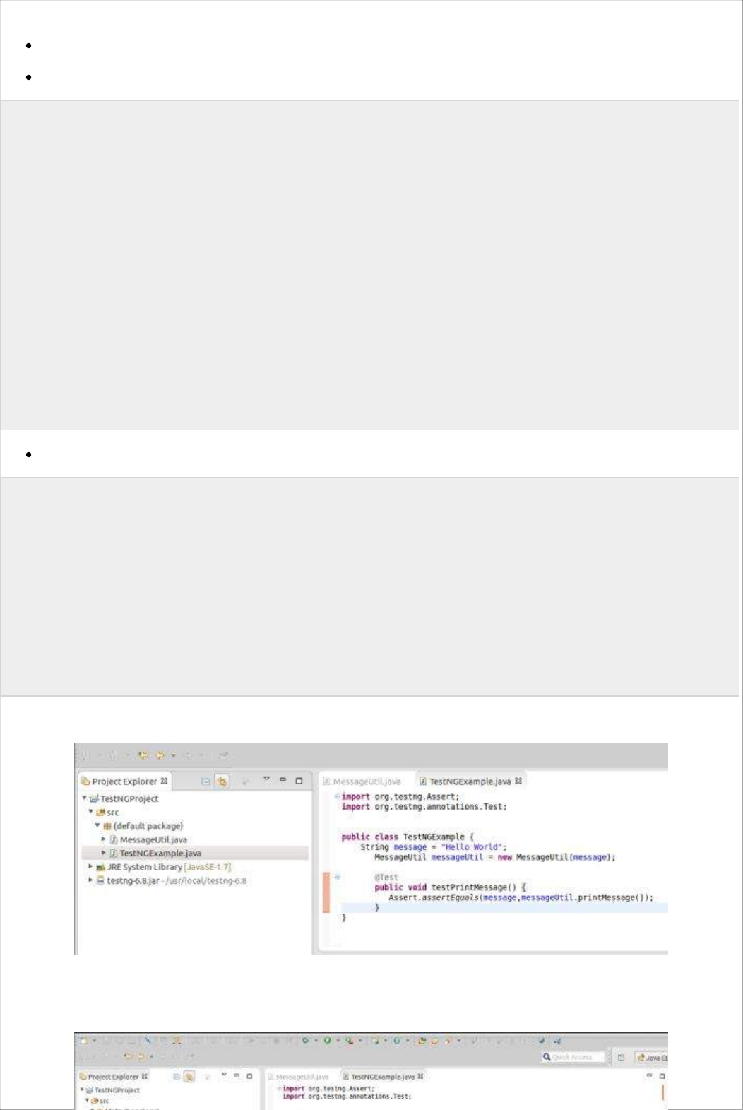 Create MessageUtil class in C:\ > TestNG_WORKSPACE > TestNGWithAnt > src folder