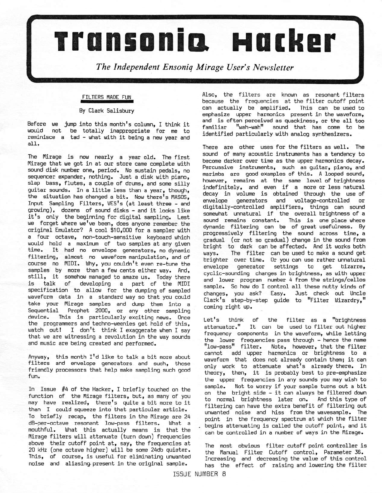 User Manual: Ensoniq Corporation Transoniq Hacker Archive Issue #008 Ensoniq Corporation - Transoniq Hacker Archive - Issue #008