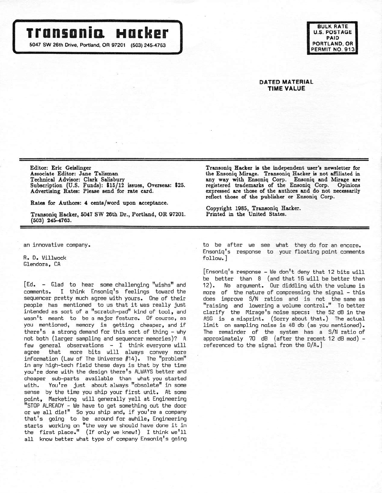 Ensoniq Corporation Transoniq Hacker Archive Issue #008 Th 008