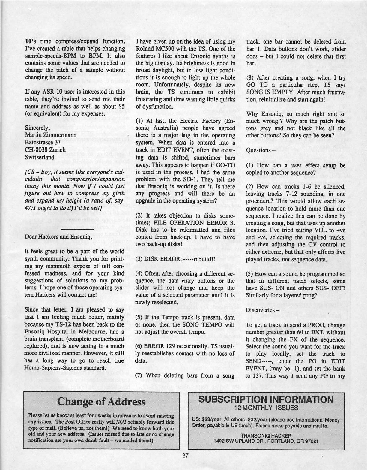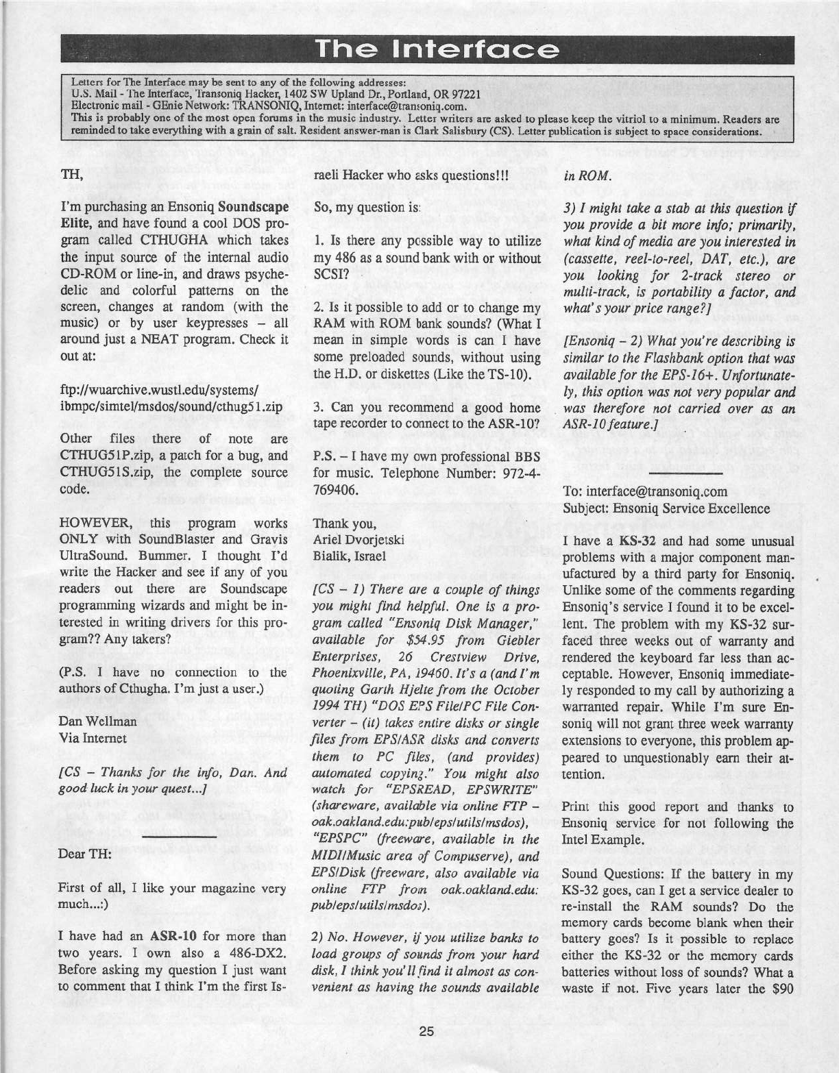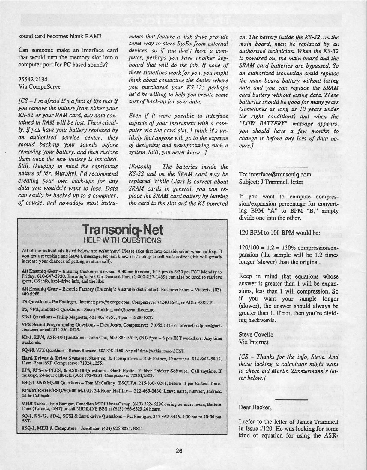Ensoniq Corporation Transoniq Hacker Archive Issue #122 Th 122