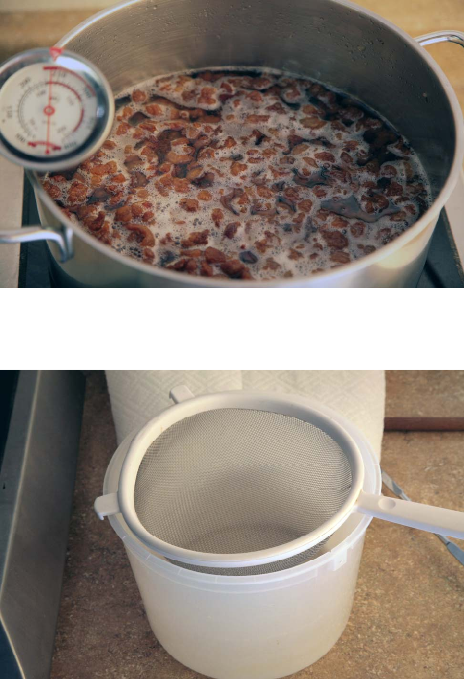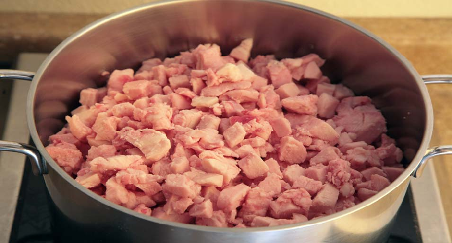 Our goal in our rendering process is a bit different from frying bacon in that it is the fat we wish