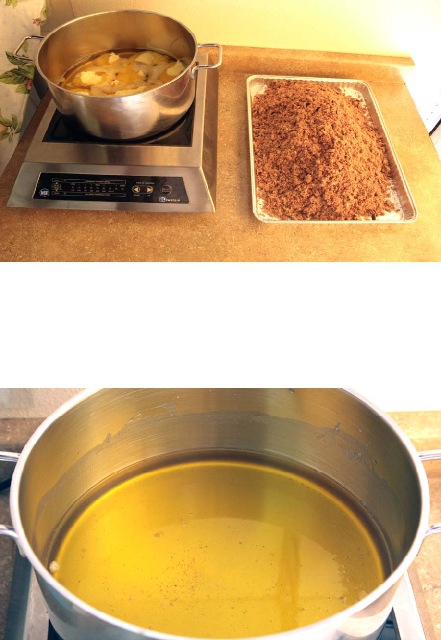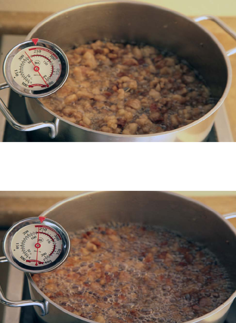 Melt the fat on low heat. It will start to melt at about 120 deg F. Try to keep the temperature