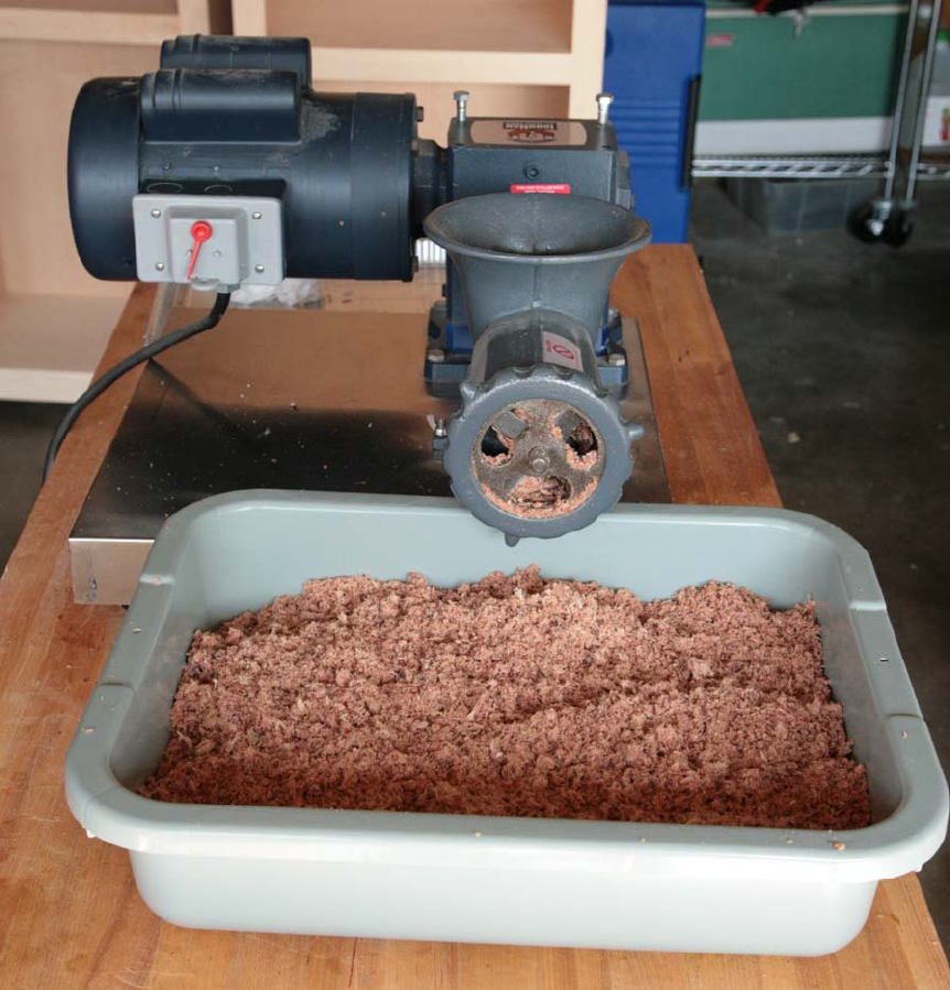 Grind the meat to a fibrous consistency like a fluffy, but slightly chunky mulch. I use a meat