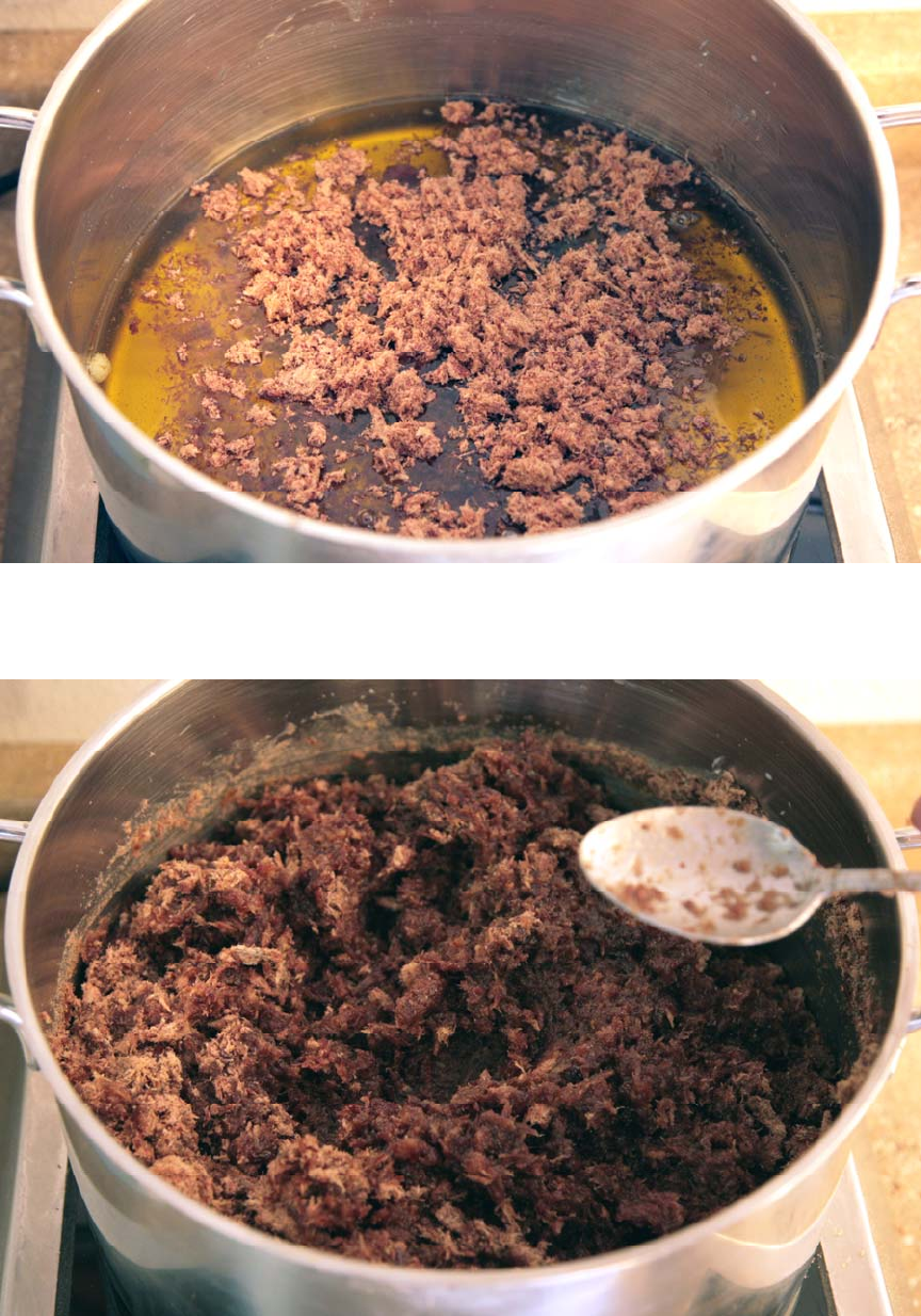 Traditionally the dry meat was pounded into a powder using rocks. I’ve tried the pounding