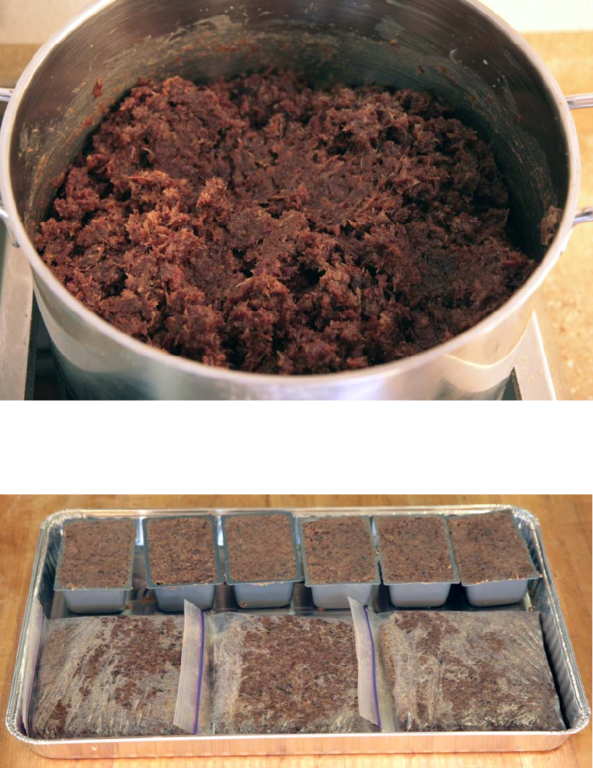 rendered fat, 45% shredded dehydrated meat and 5% dried and ground berries by weight. The