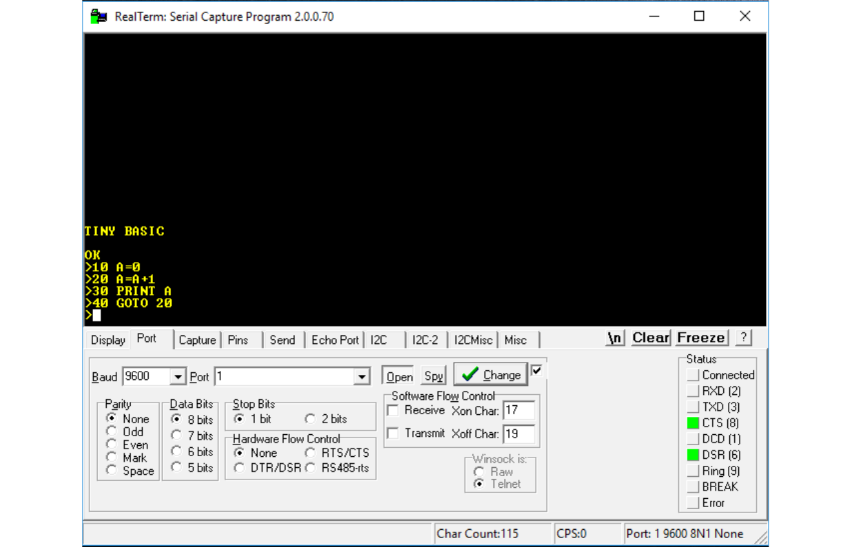 Using Tiny BASIC with Realterm in Windows.........................................................................................6