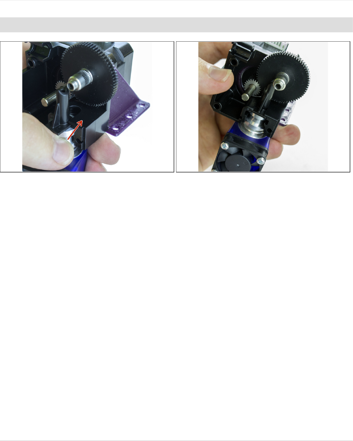Slip the pinion gear onto the motor shaft with the grub screw facing down, towards the motor.