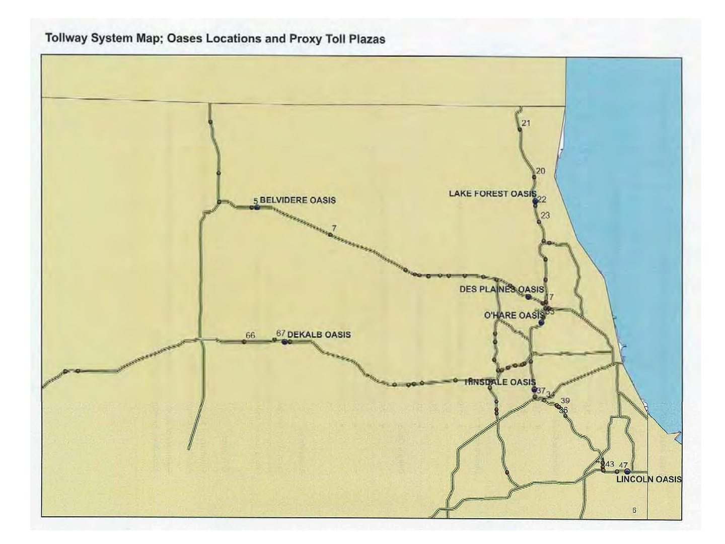 fenced areas for pets and auto and truck fueling stations. The Illinois Tollway