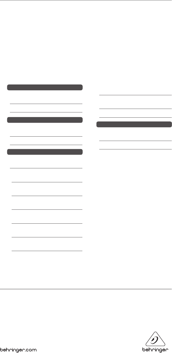はありません。 BEHRINGER は MUSICGROUP (MUSIC- GROUP.COM) のひとつのブランドです。 すべての商標はそれぞれの所有者の財産です。