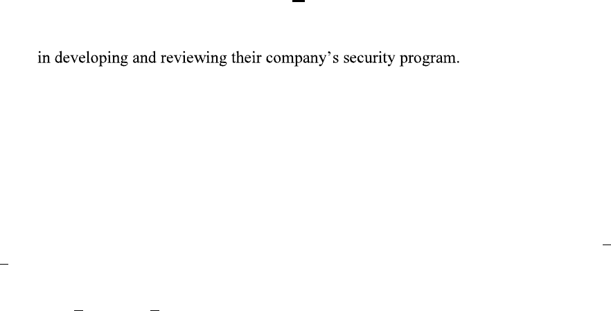agency recommendations for pipeline industry security practices. Based on its Corporate Security