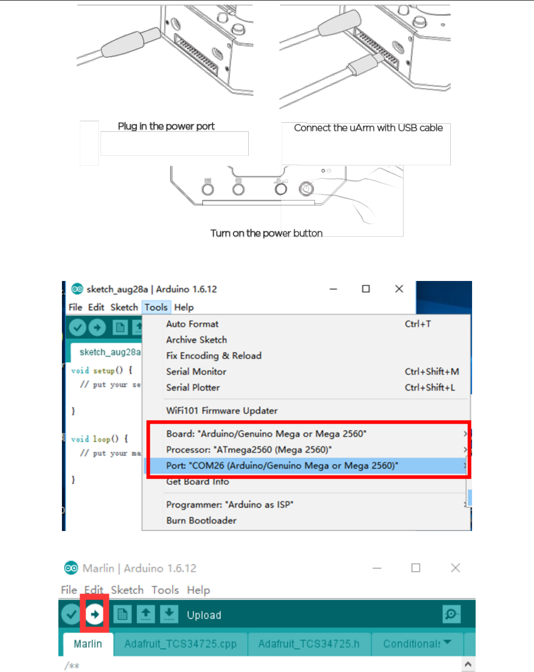 3. Please clear a space for uArm, in case of knocking down anything.