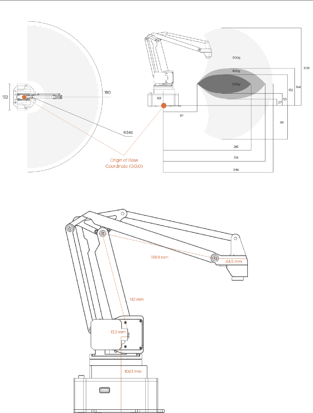 The picture in the right also shows the dynamic payload range of uArm.