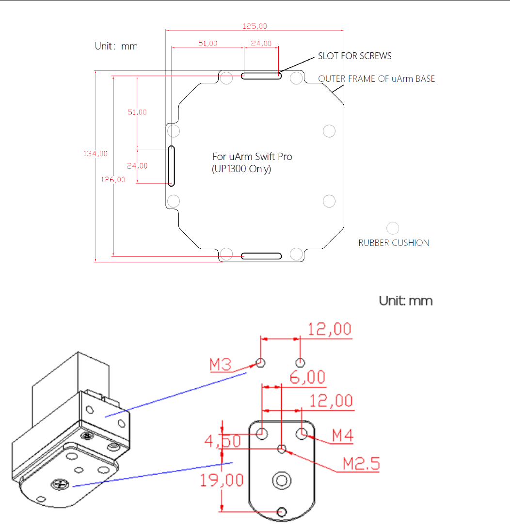 Add the dimensions of the base of uArm Swift Pro V1.1
