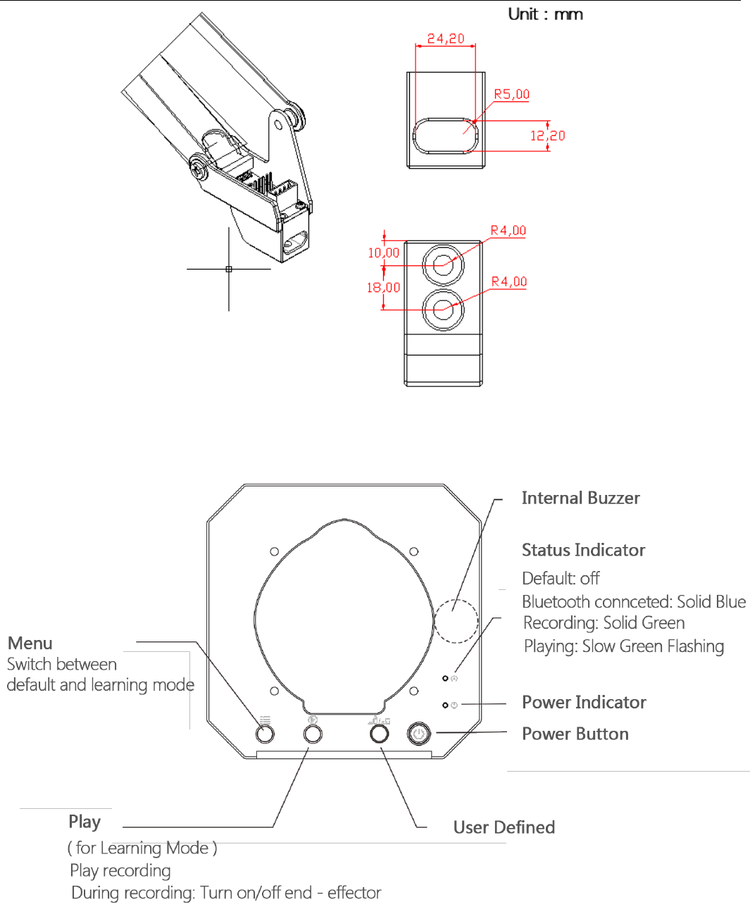 Caution: By default, the user defined button is for switching between Bluetooth and USB mode. Please ensure