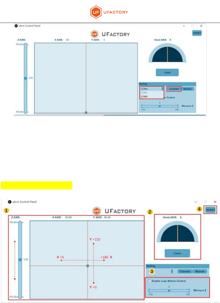 Area 1:Control uArm movement along X, Y, Z Axis.