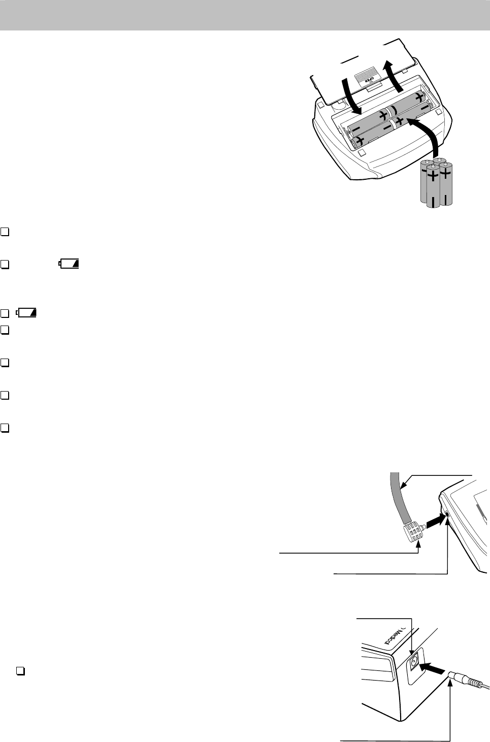 Power supply 4 x 1.5V batteries (R6P, LR6 or AA) or