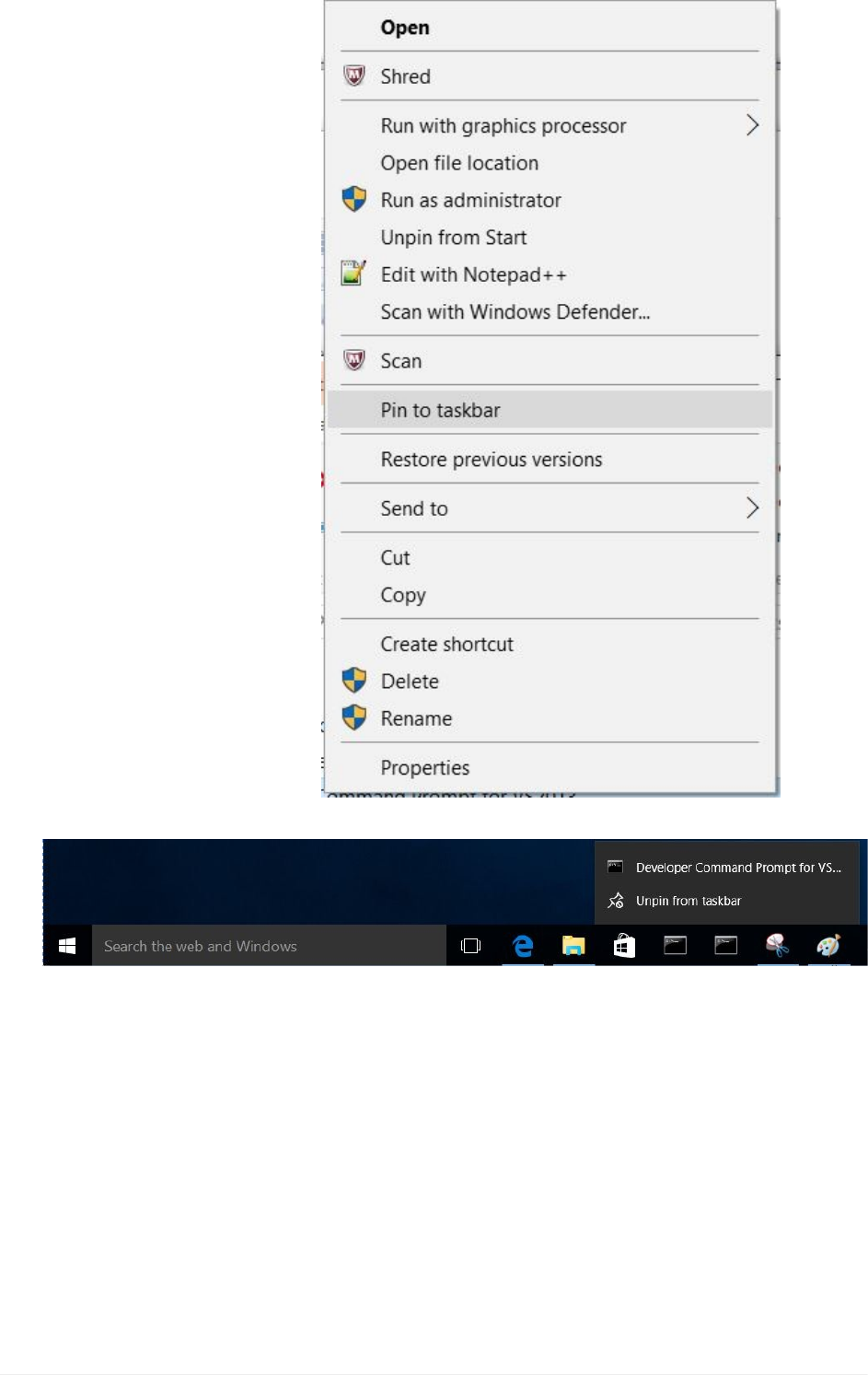 ThefollowingstepscanbeusedtoPintheMicrosoftWindows10–VisualStudiocommand
