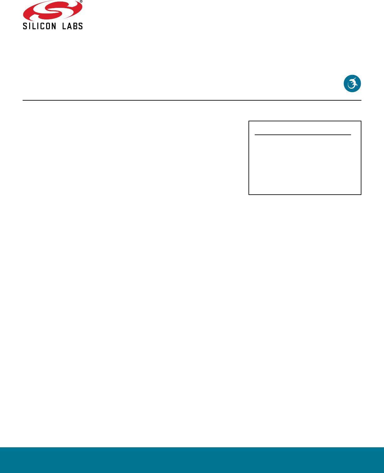 Silicon Laboratories Inc.® , Silicon Laboratories®, Silicon Labs®, SiLabs® and the Silicon Labs logo®, Bluegiga®, Bluegiga Logo®, Clockbuilder®, CMEMS®, DSPLL®, EFM®,