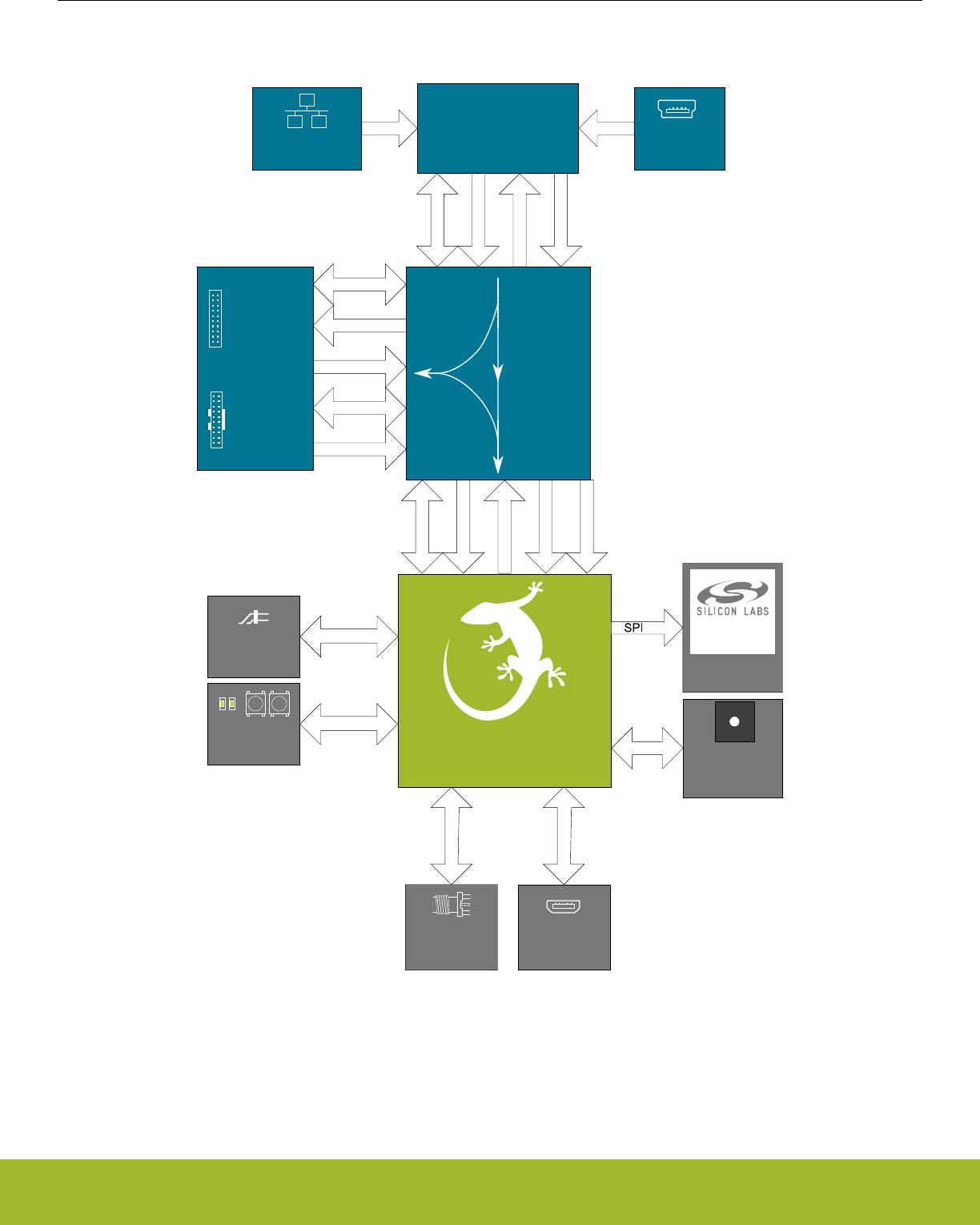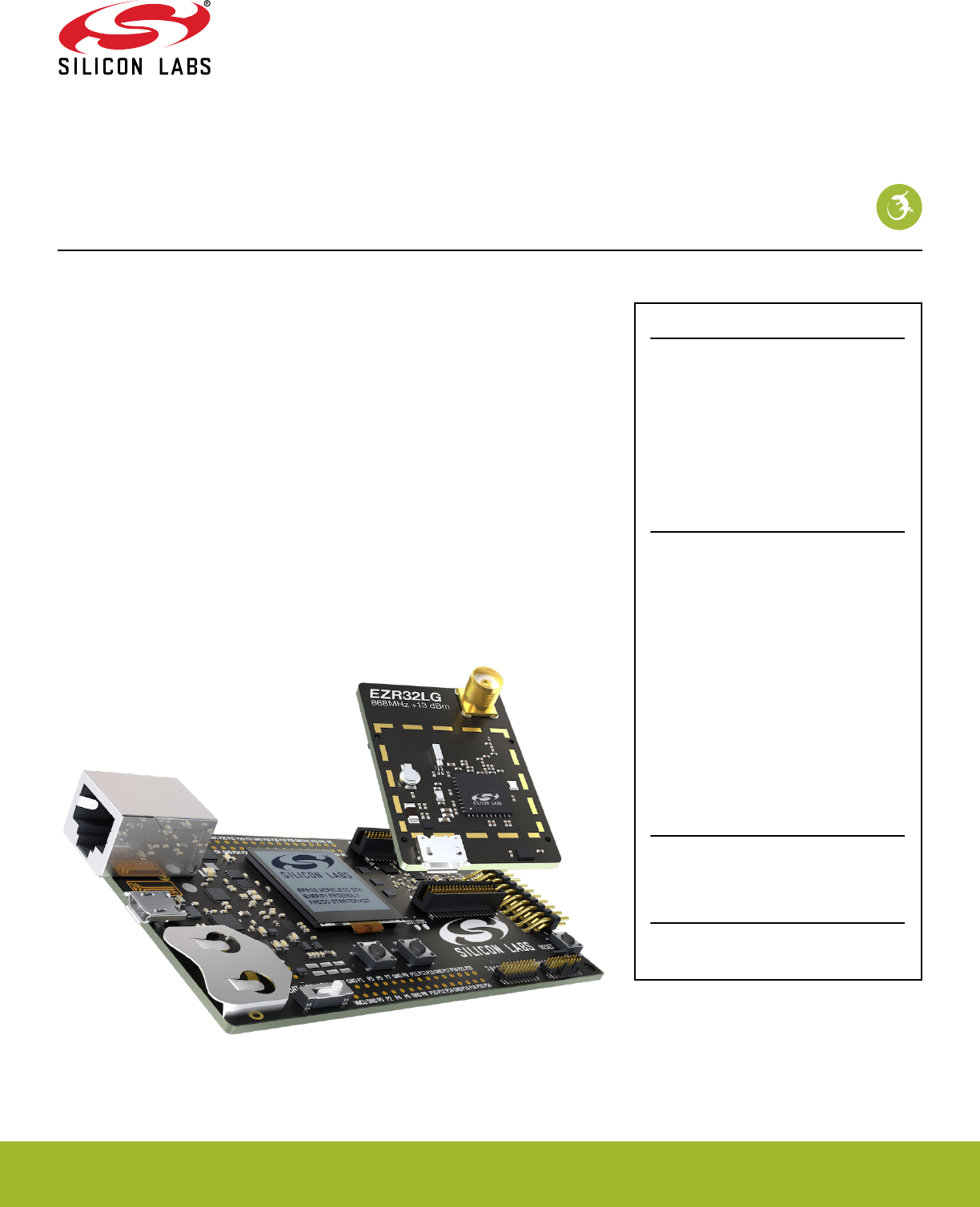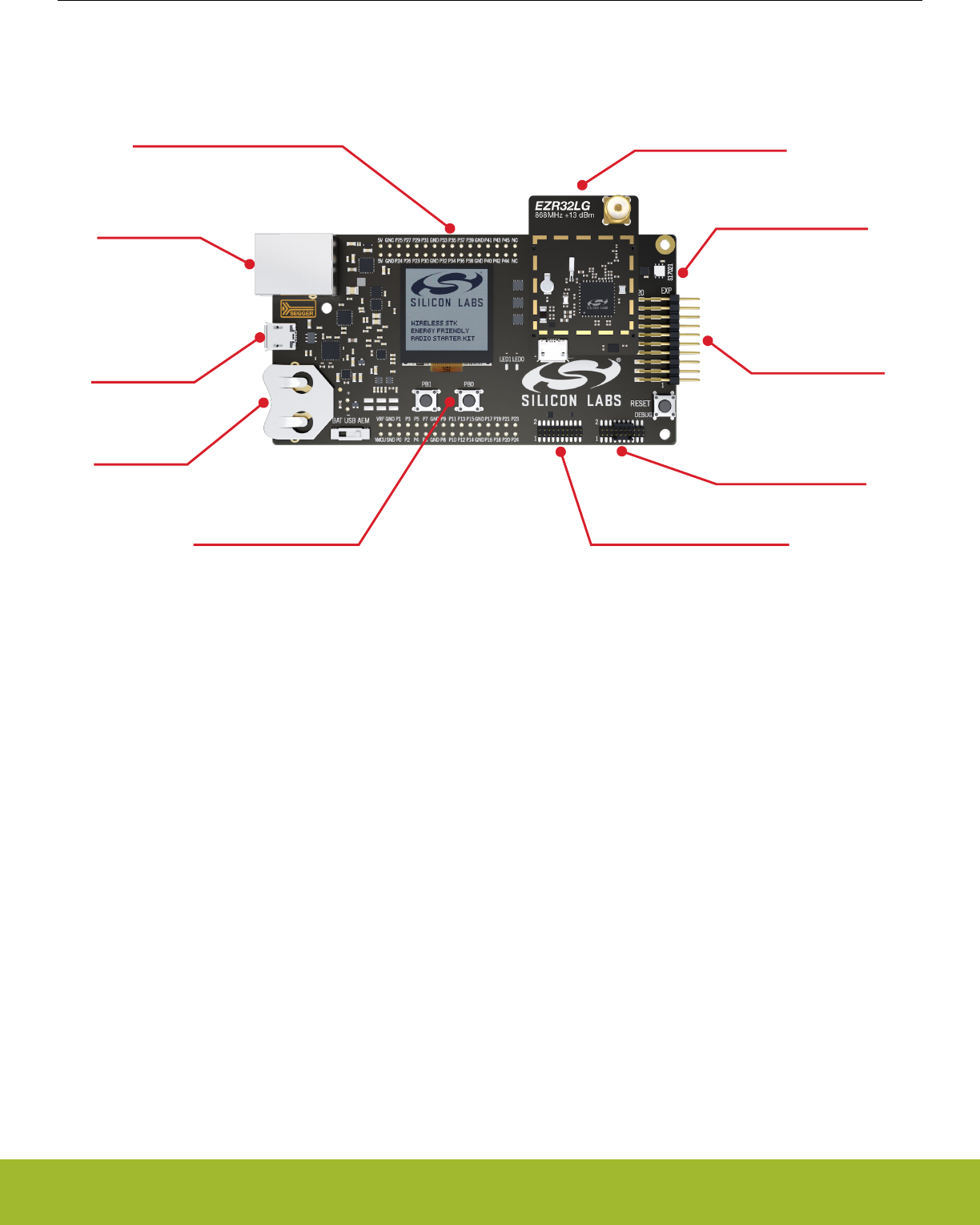tains sensors and peripherals for easy demonstration of some of the EZR32's many ca-