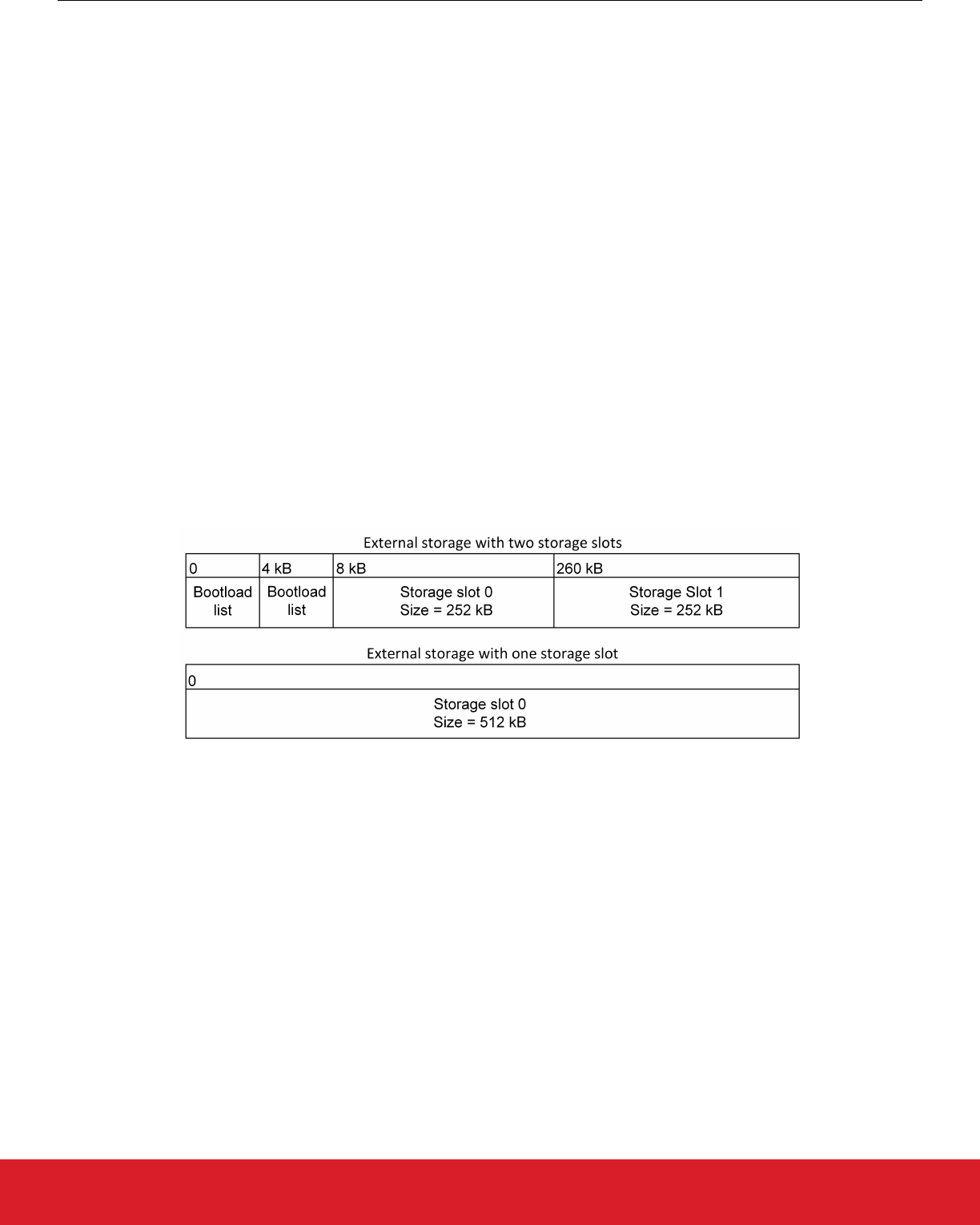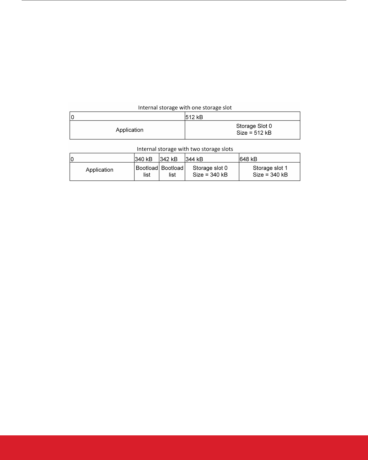 •Application Storage Interface: Application interface for interfacing with the bootloader storage. The Storage Interface is only avail-