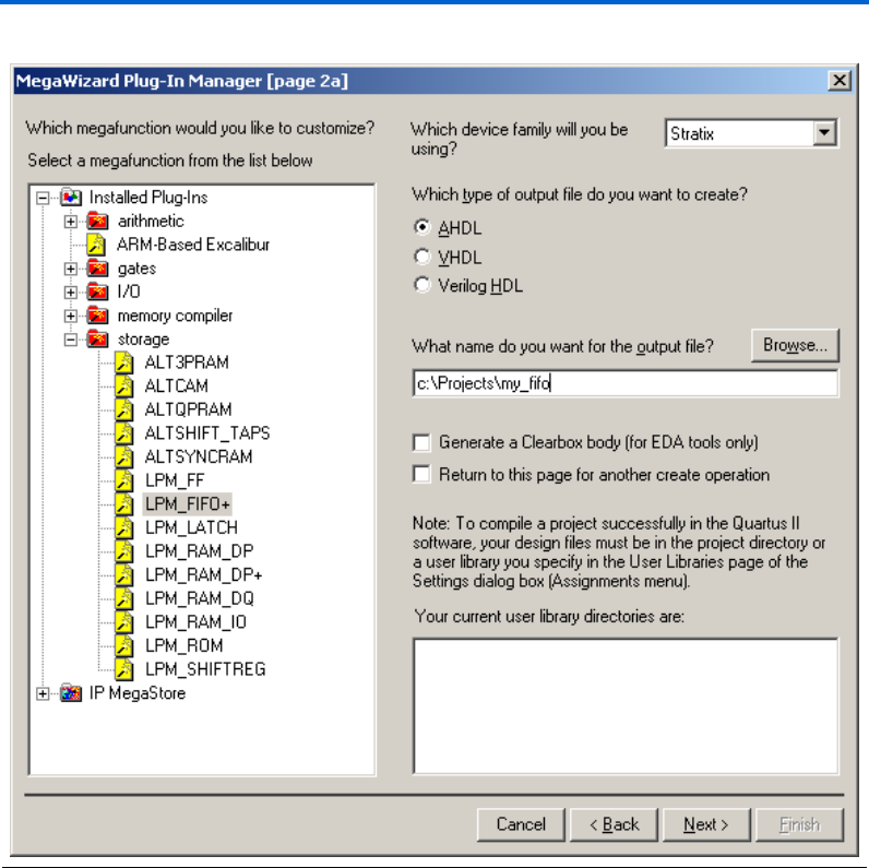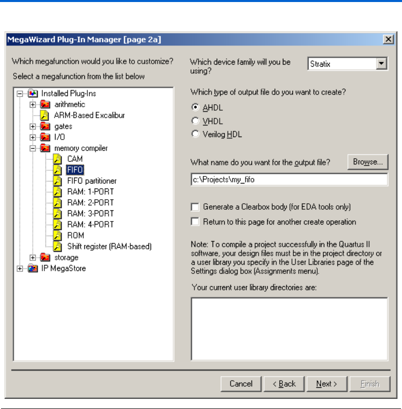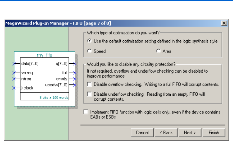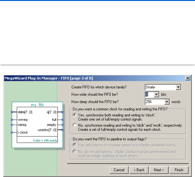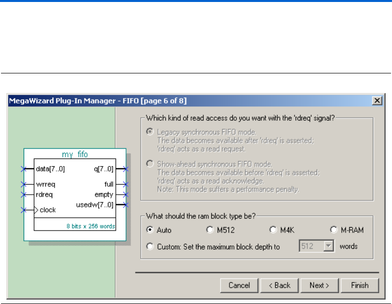 instantiating the FIFO, or make a default parameter assignment in the Quartus II software, Settings page
