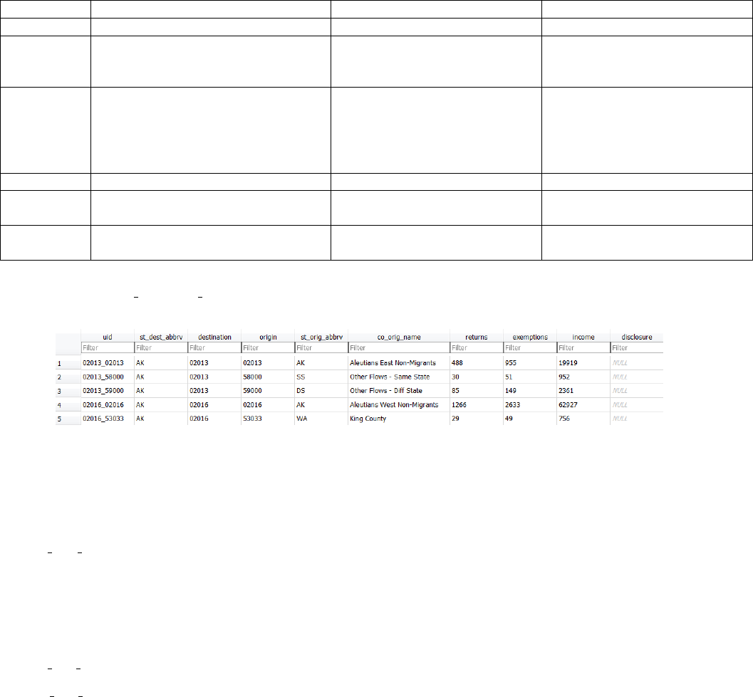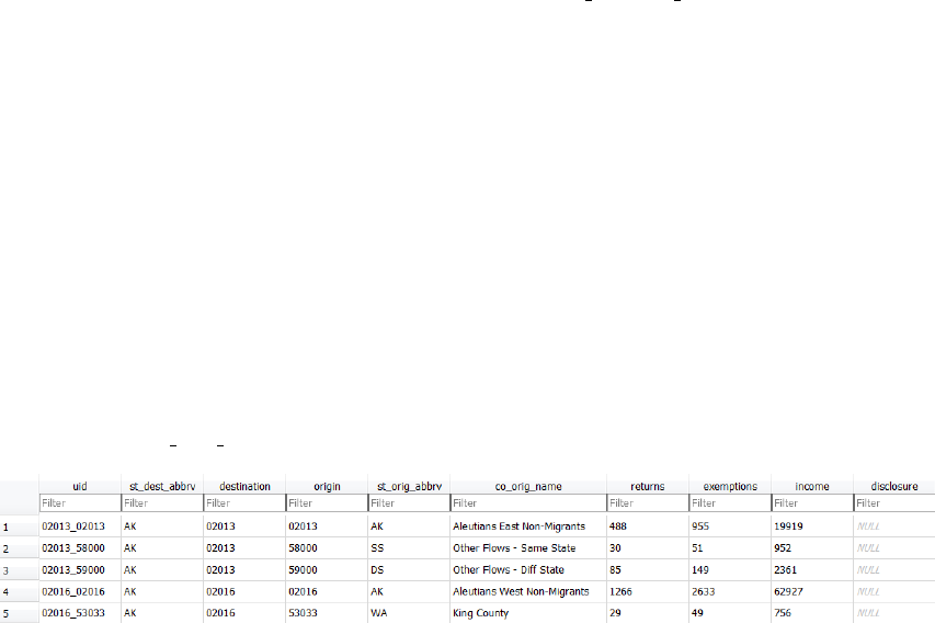 not include the “Non-Migrants” rows (filers who moved within the destination area itself). The example result