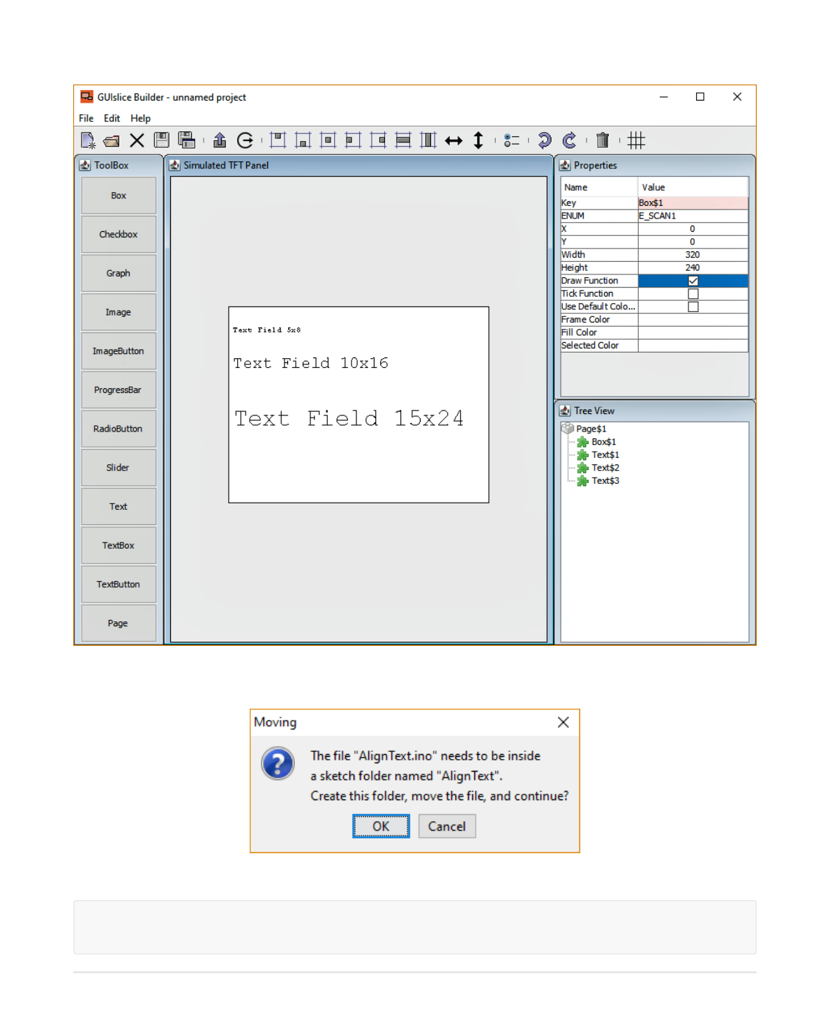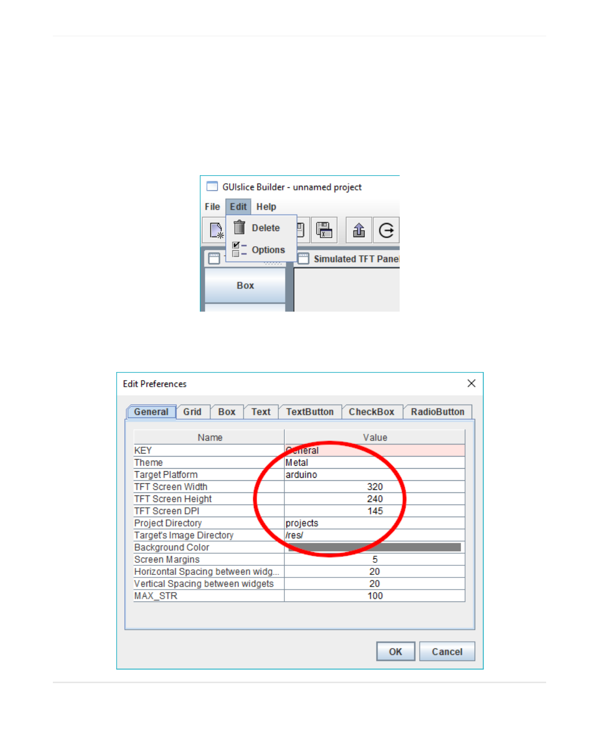 The builder is initially setup for Adafruit's TFT 2.8 Display. It's display is 320px wide and 240px height with a