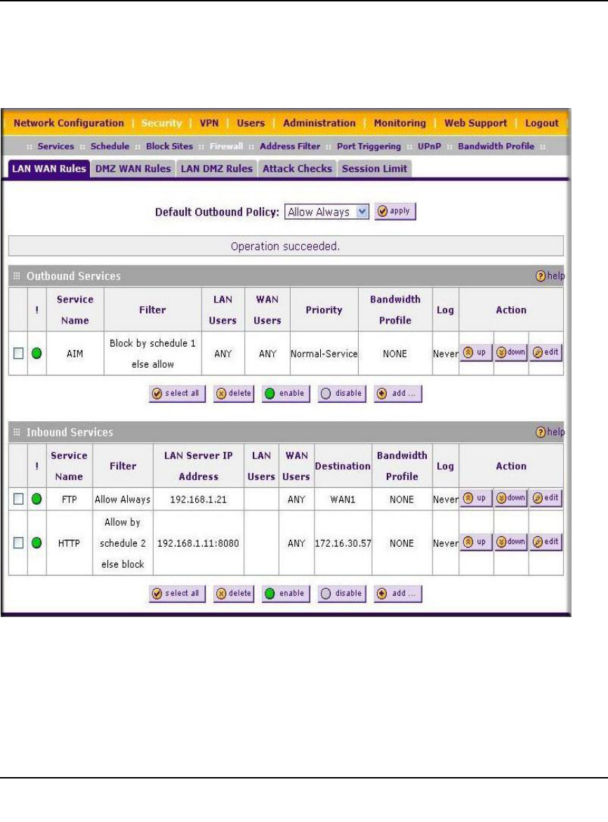 - Creating a LAN WAN Outbound Services Rule