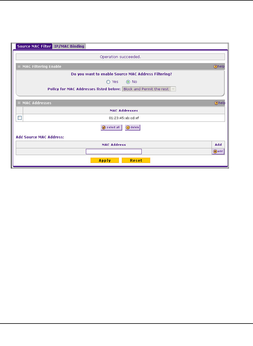Source MAC Filter screen4-25
