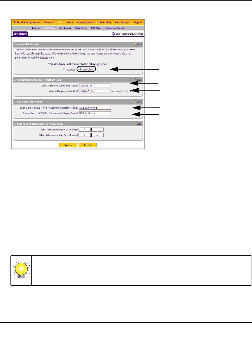 - Using the VPN Wizard for Client and Gateway Configurations