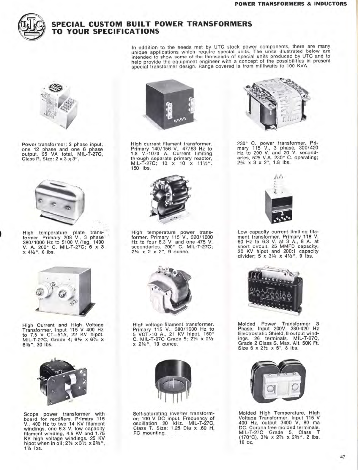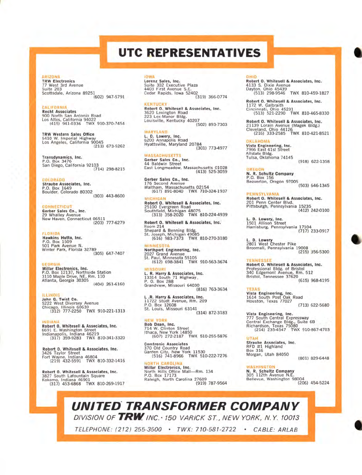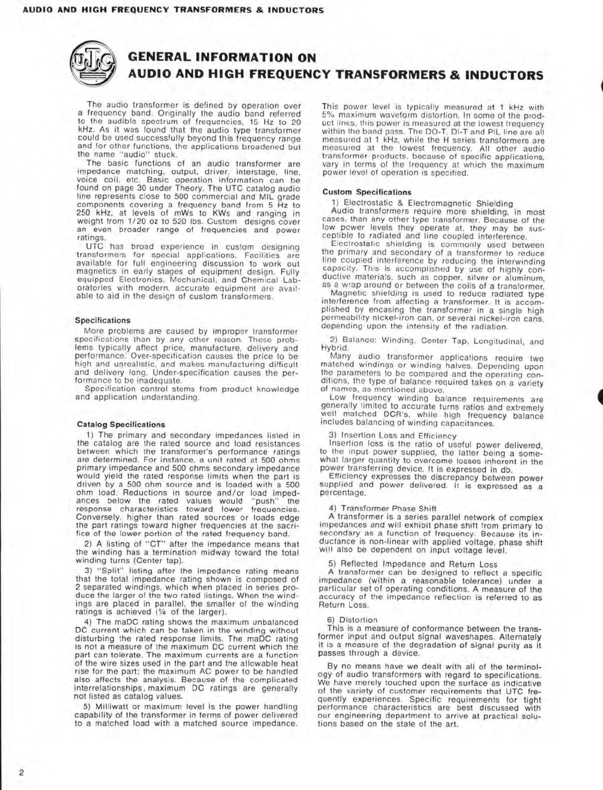 User Manual: utc transformer catalog circa 1970