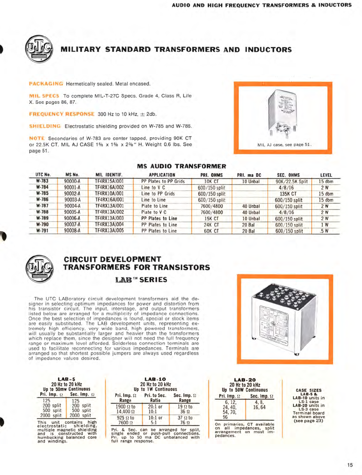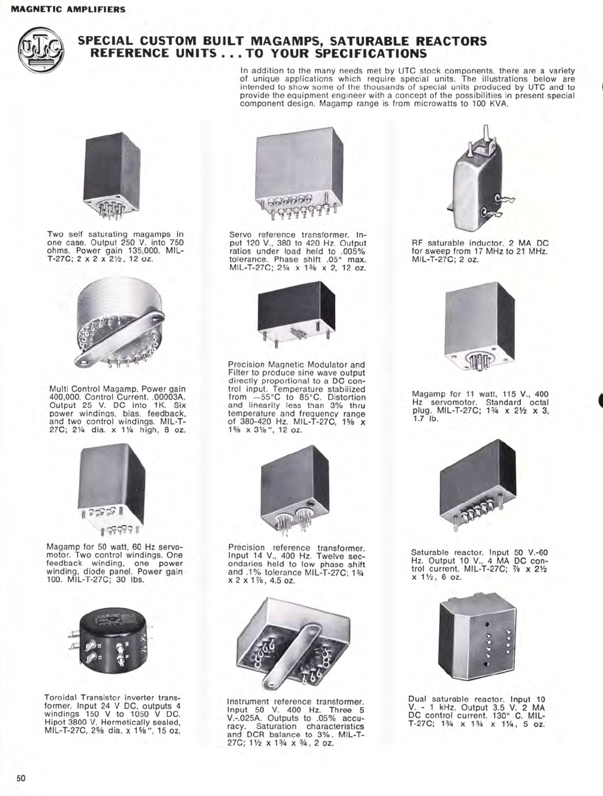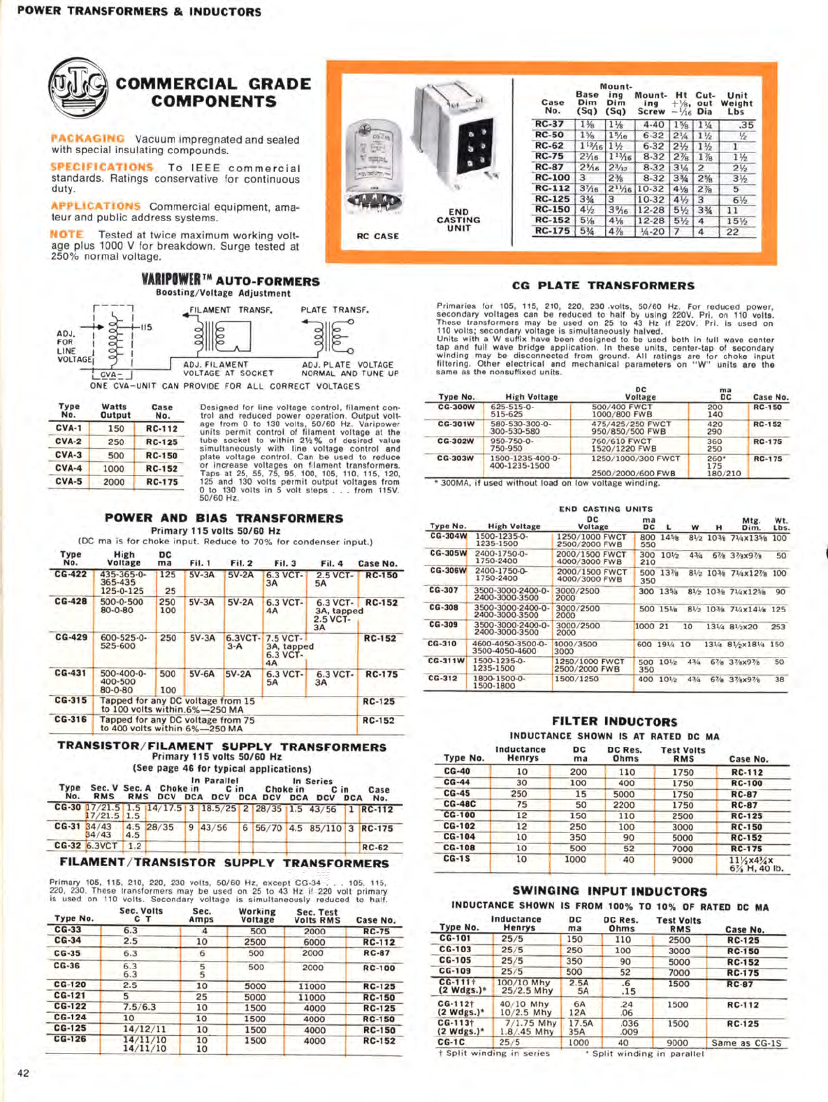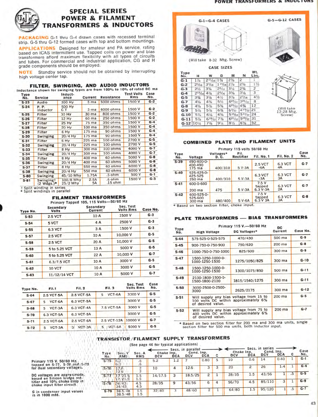 User Manual: utc transformer catalog circa 1970