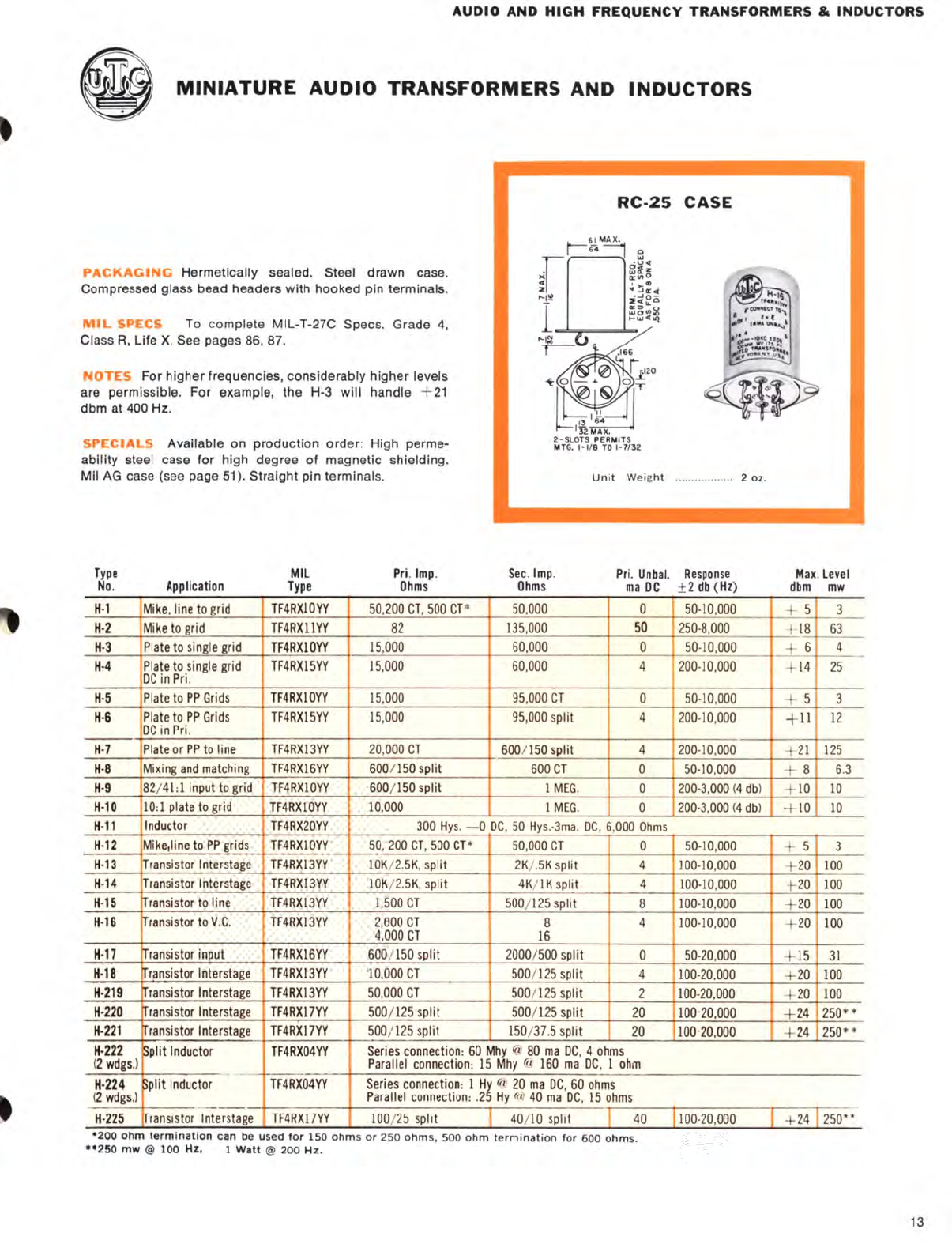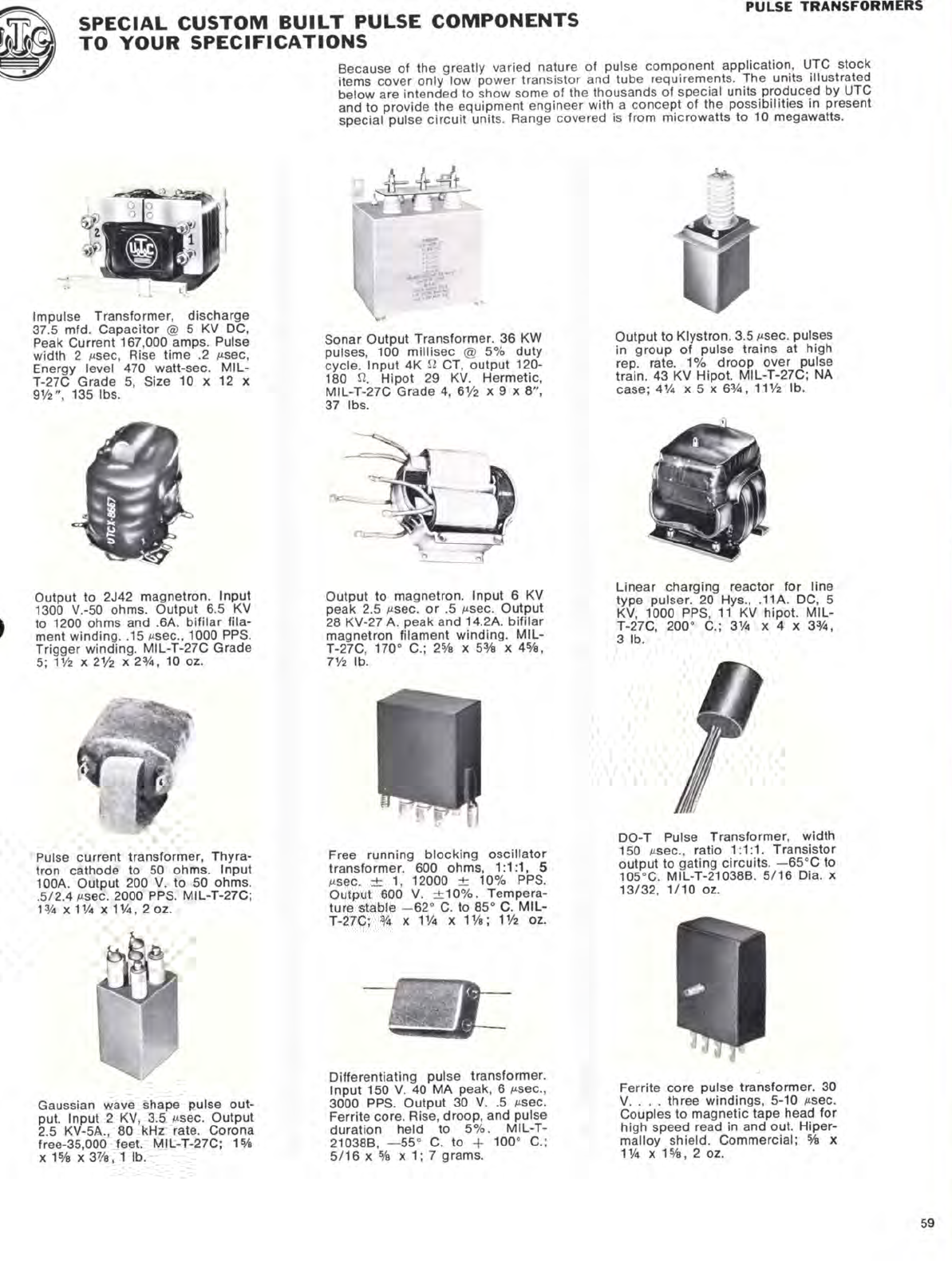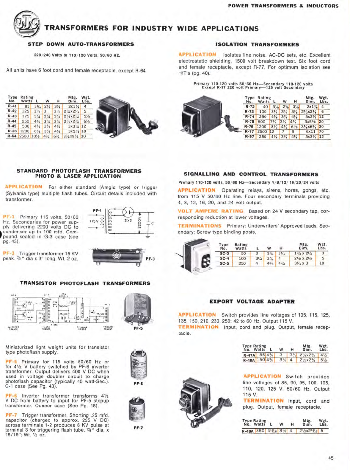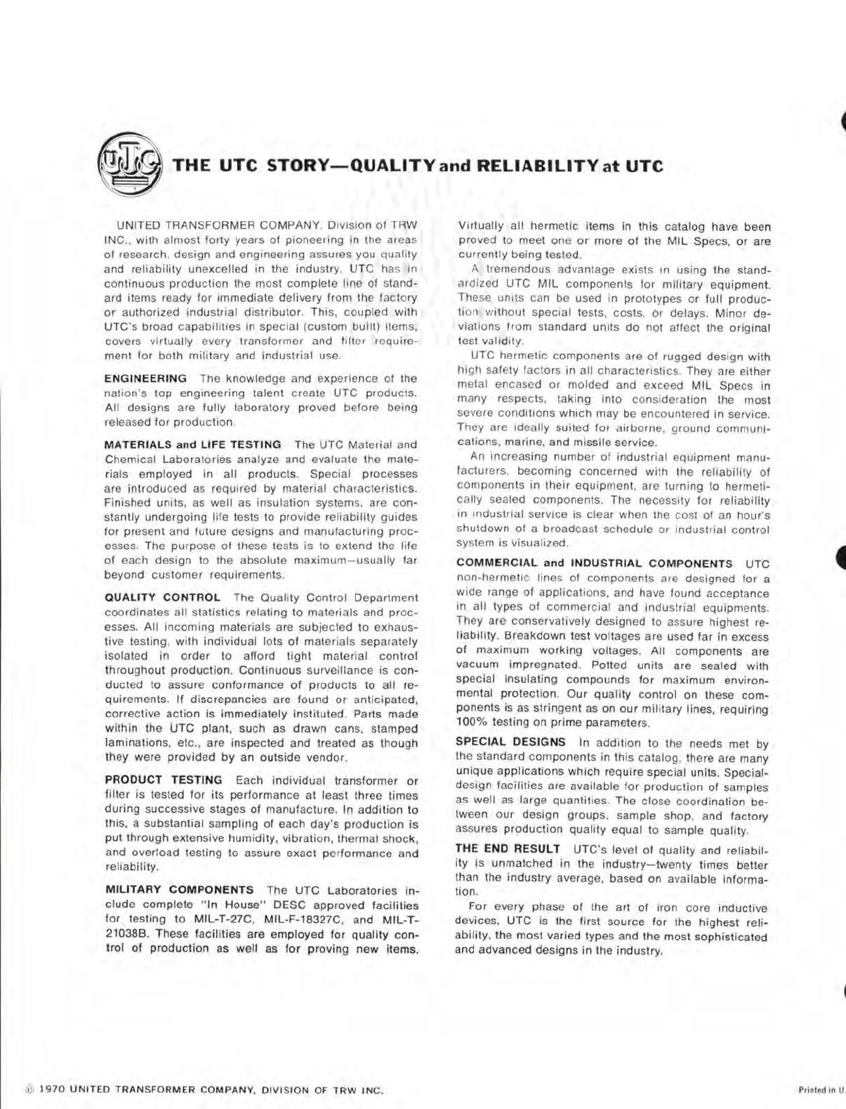 UTC United Transformer Company Catalog Circa 1970