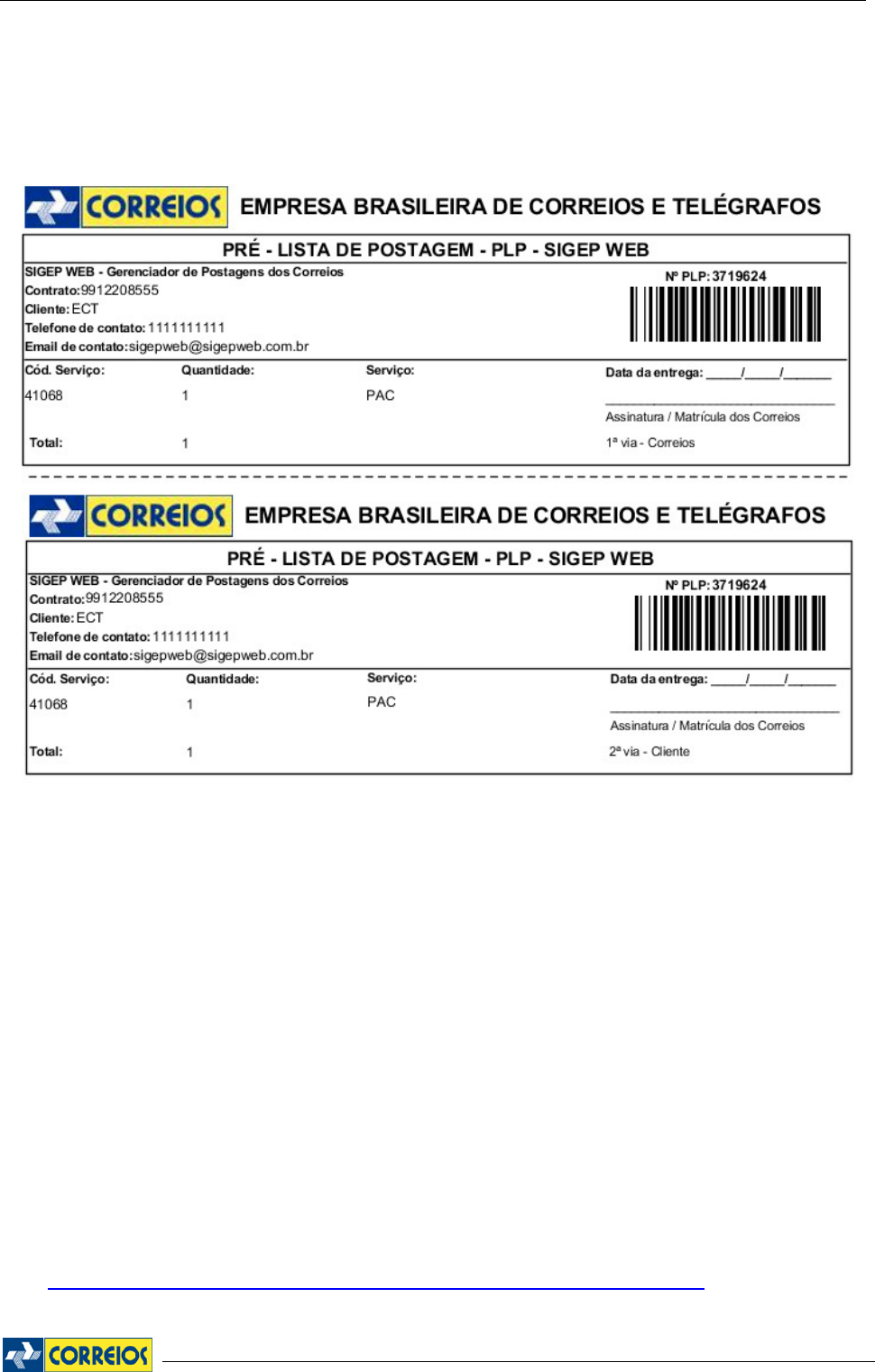 Geração de Pré Lista de Postagem (PLP) que ficará aguardando a carga de