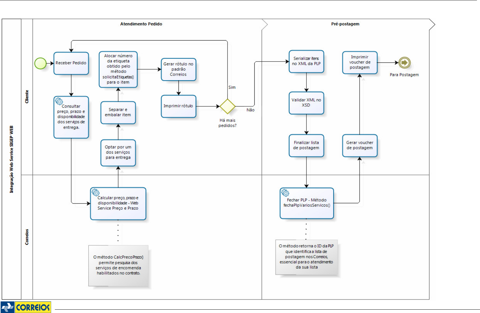 de Postagem dos Correios – SIGEP WEB com sistemas proprietários de cliente,
