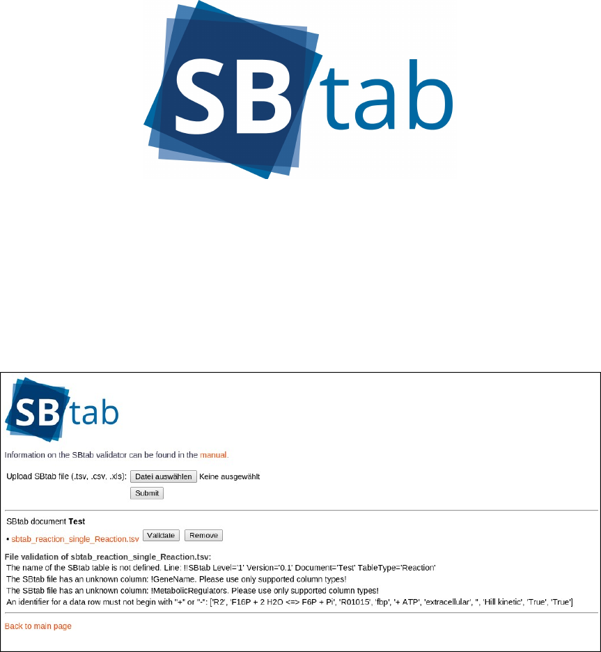 The SBtab online validator helps you check your SBtab files. After uploading an SBtab file and