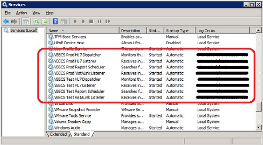 The following events are audited on VBECS servers. These events may be viewed in Event Viewer logs