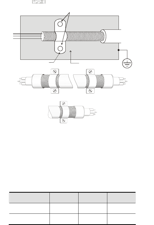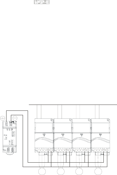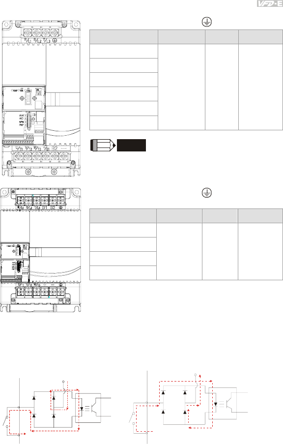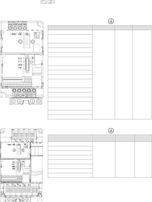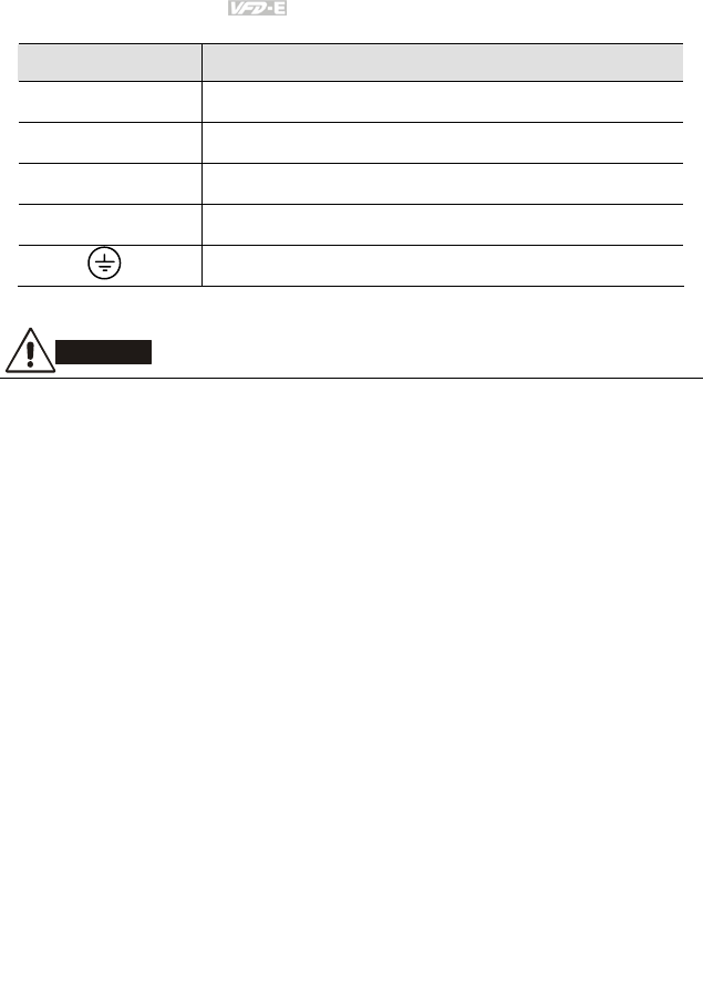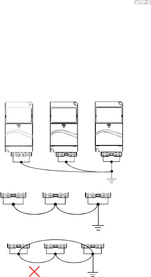 5. Ground the VFD-E using the ground terminal. The grounding method must comply with the laws