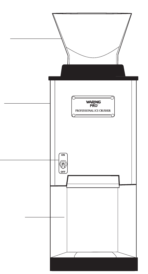 opening of the Waring Pro® Ice Crusher. Turn machine on.
