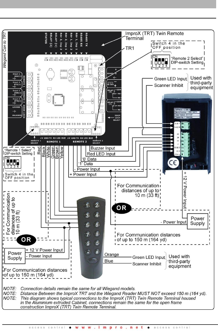 Figure 4: Wiegand Reader Connected to the ImproX PT, ImproX TA or ImproX iTA