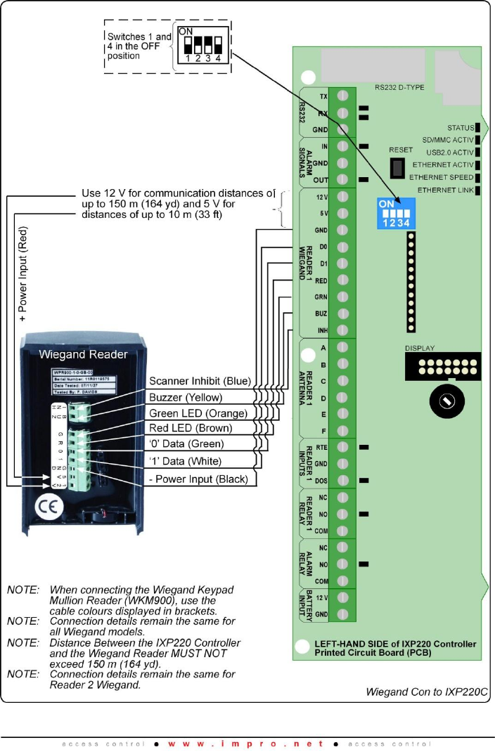 Figure 3: Wiegand Reader Connected to the IXP121 Controller or ImproX MfT