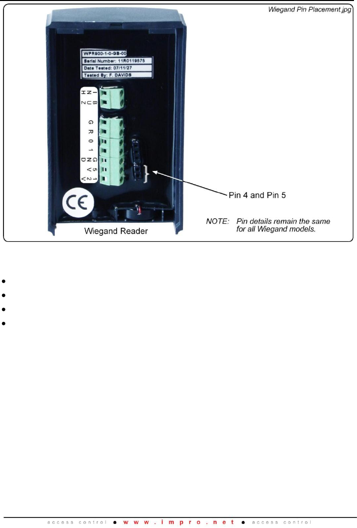 corresponding with the required mode (Refer to page 9 for Wiegand Output Mode
