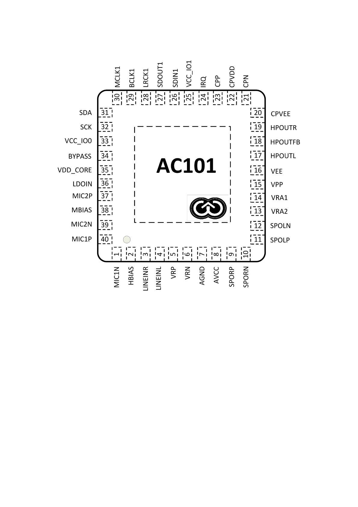 This document aims to describe the AC101 from following aspects: block diagram, pin assignment,