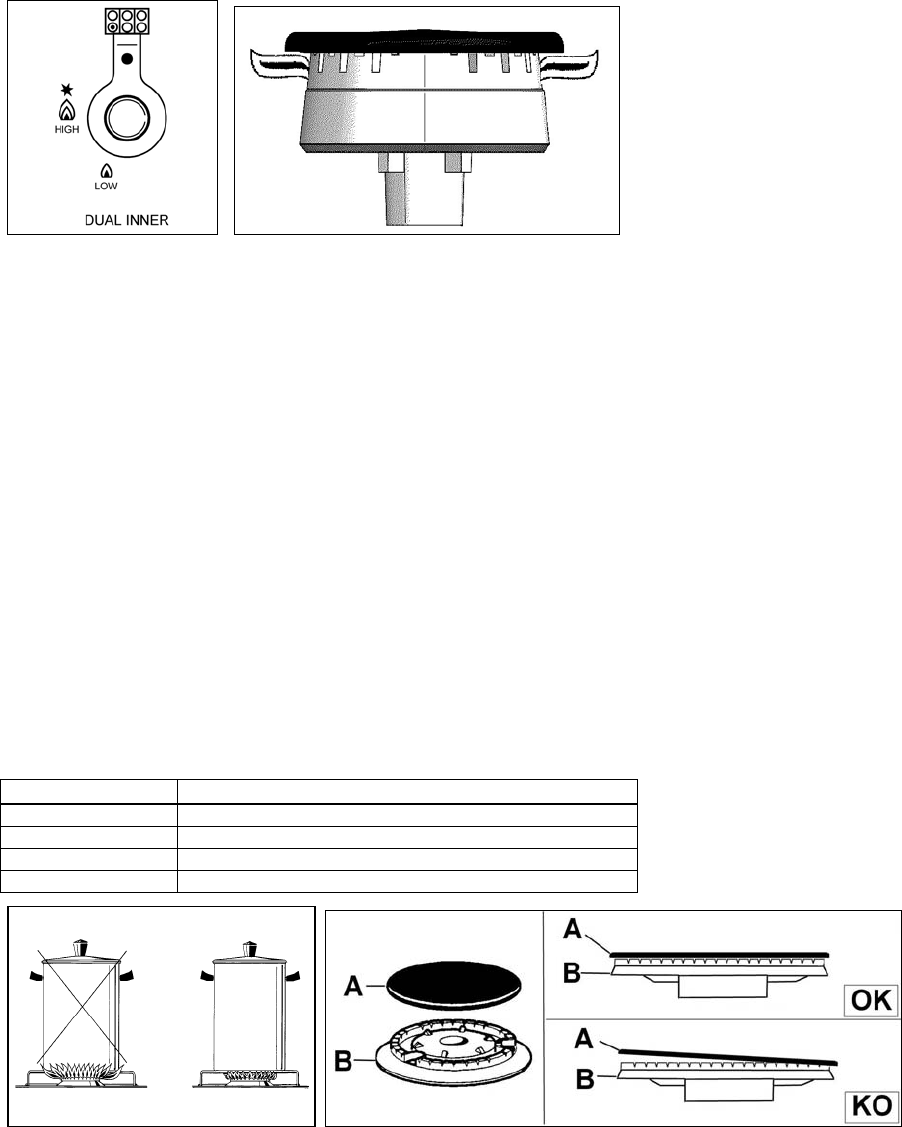 Note: Dual burner is composed by two burner (inside and outside); each one operates under the relative gas valve