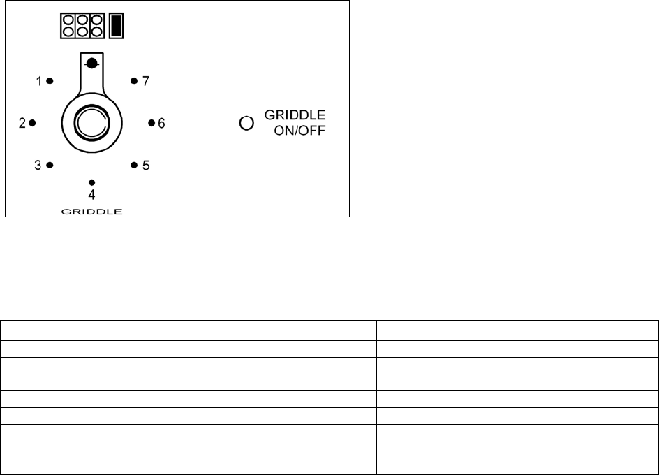 Pre-heat at the maximum temperature, ( 7 position) for 15 minutes, then place the food on the griddle and
