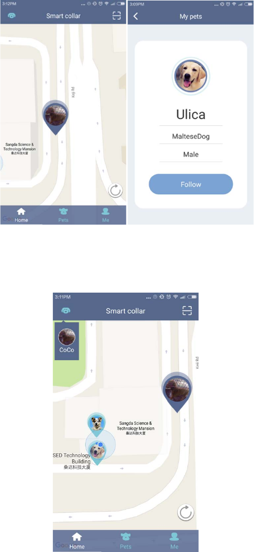 Pet navigation: In the home page, after you click pet’s photo, there is a navigation button at