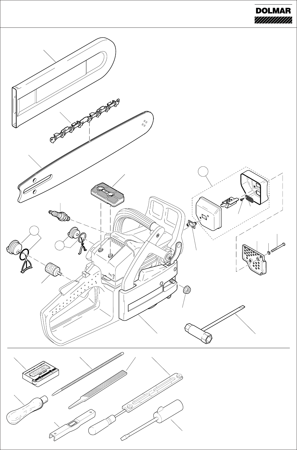 DEALER AUTHORIZED BY DOLMAR. THE USE OF PARTS THAT ARE NOT EQUIVALENT IN PERFORMANCE AND DURABILITY