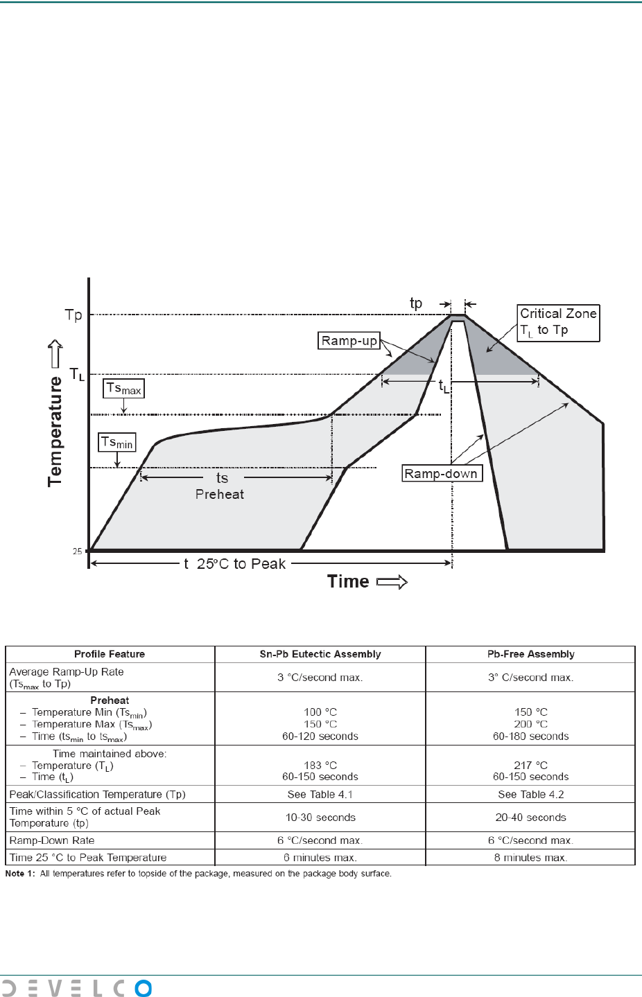 Figure 7.8 illustrates a recommended reflow soldering profile for the DevCom 06 ZigBee Module