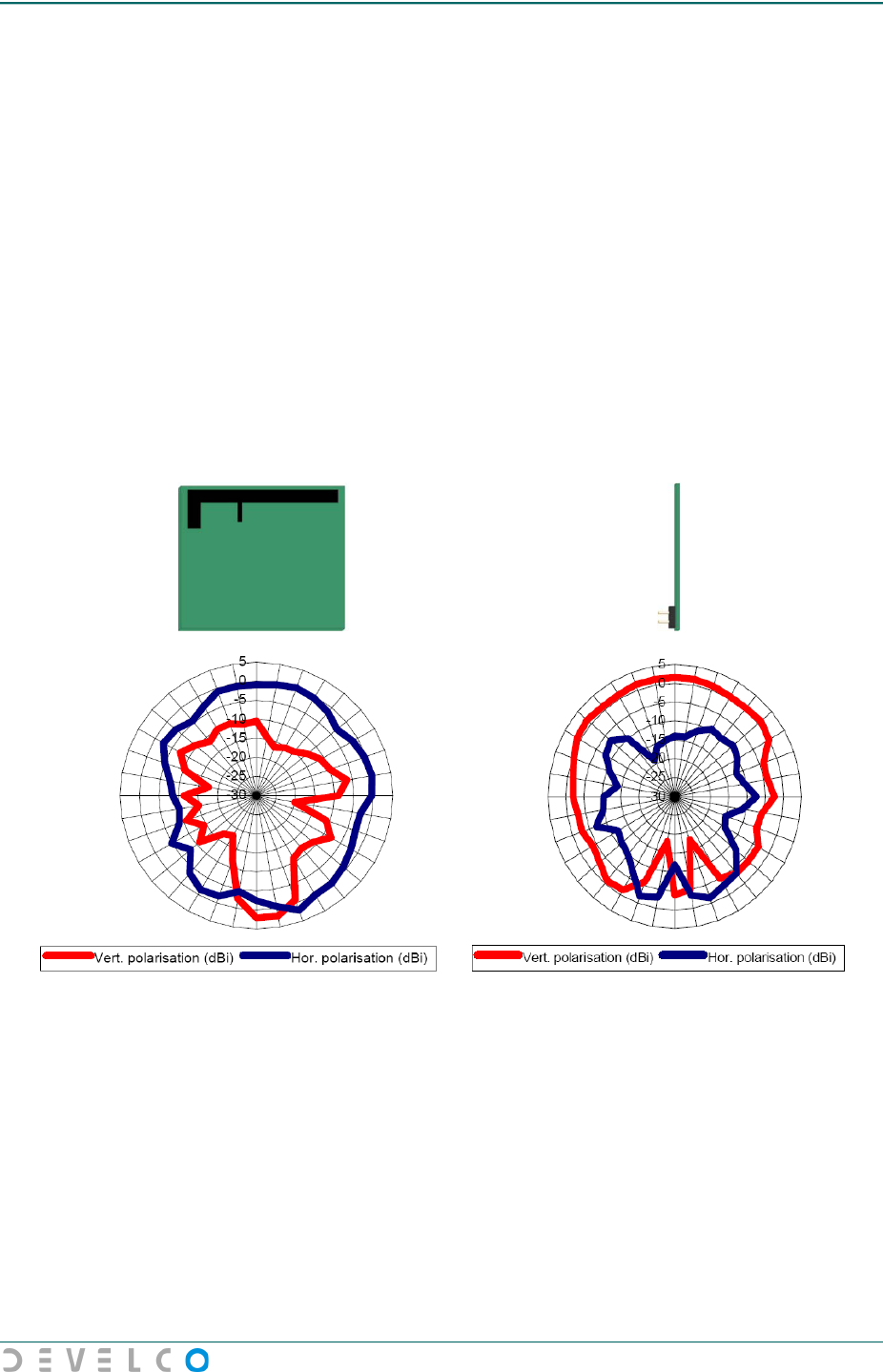 Figure 6.1 and Figure 6.2 show the DevCom 06 ZigBee Module horizontal and vertical radiation