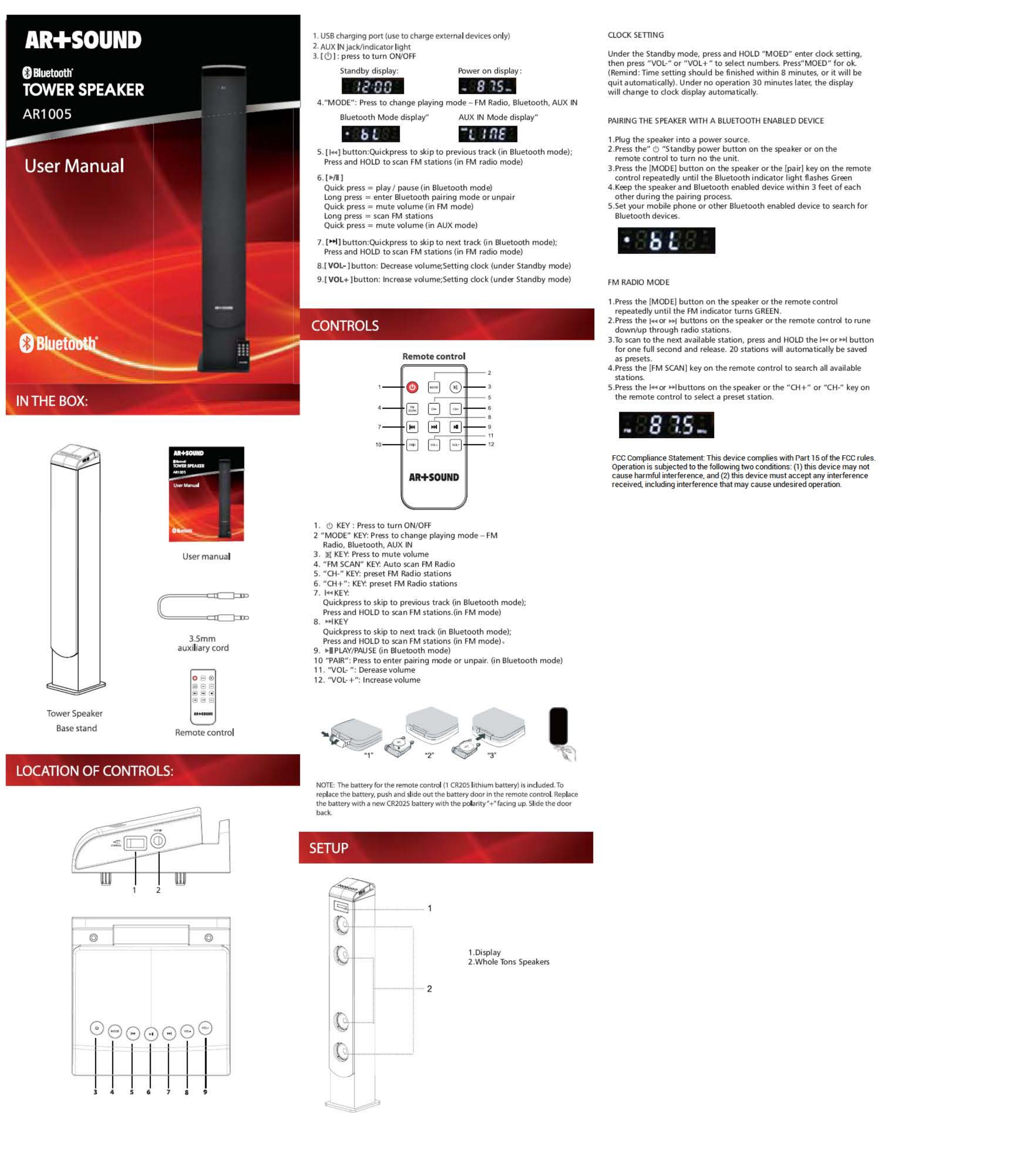 Dongguan Earson Audio Technology AR1005 TOWER SPEAKER User Manual